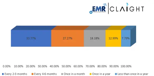Approximately 34% of consumers choose to purchase fragrance products every 2-3 months, according to the study. Buying habits for fragrance products vary widely among individuals. Some people enjoy acquiring a new scent every few months to maintain variety and excitement, while others prefer to stick to their favorites and buy a perfume or deodorant only once a year or even less frequently.