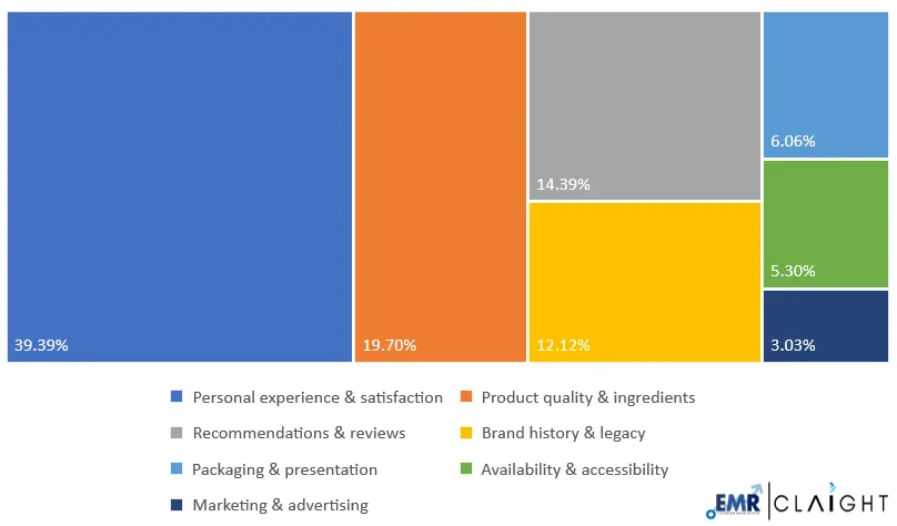 Trust in perfume and deodorant brands is dependent on various factors. According to an Expert Market Research survey, the key drivers of consumer trust for perfumes and deodorants are personal experience and satisfaction, cited by nearly 40% of respondents.