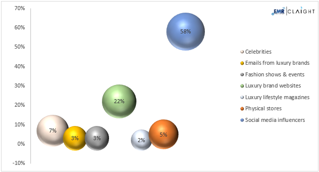 Recently a study was done by Expert Market Research which revealed that around 58% of consumers prefer social media influencers to stay updated with the recent trends in luxury lifestyle. This study also highlights the role of celebrities, physical stores, emails, or letters from luxury brands play in contributing to various luxury trends.