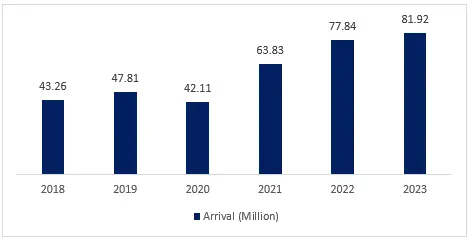 Figure: Total Tourists Arrival (Million) in Saudi Arabia, 2018-2023