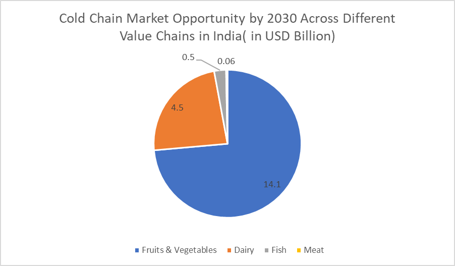 The cold chain market in India is anticipated to expand due to shifting consumer tastes and rising e-commerce sales. The need for cold chain solutions is rising as a result of the rise of organized retail outlets in developing countries. Increased funding for cold chain infrastructure and government programs aimed at reducing food waste will also propel industry expansion. There are substantial development prospects for the market due to the increasing use of technologies like automation and RFID in cold chain applications. Additionally, farmers are shifting their focus to cultivating fruits and vegetables as a result of the rising hazards and costs associated with grain crops. Since the majority of these crops need to be refrigerated, it is anticipated that the construction of cold storage facilities will be encouraged.