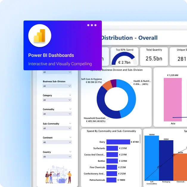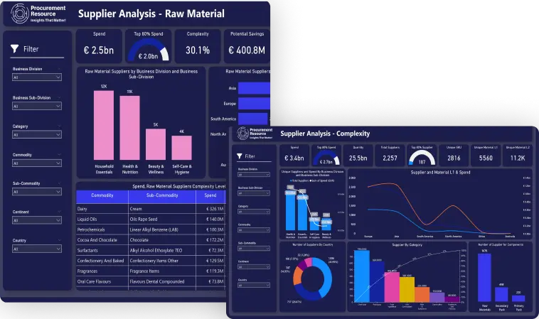 Optimize your spend analysis with comprehensive Power BI Dashboards, uncovering actionable trends and pinpointing opportunities for substantial cost savings.