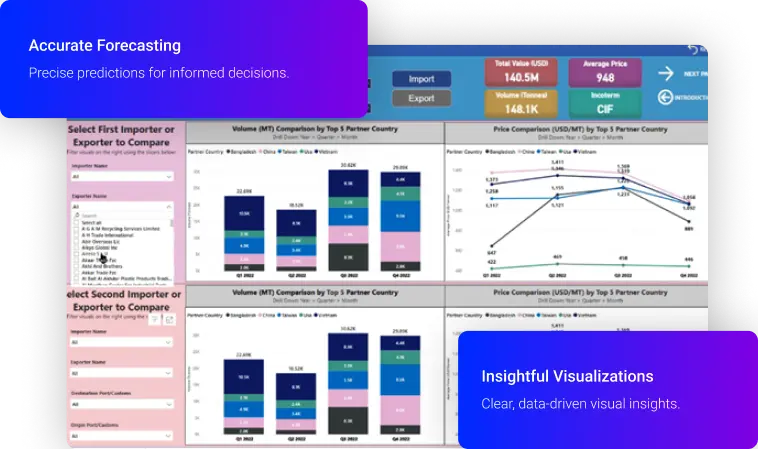 Unlock the full potential of your trade data with the Trade Data Analysis Dashboards. Transform complex trade information into actionable insights to optimize strategies, boost efficiency, and drive growth.