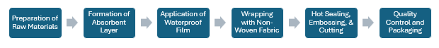 The production of diapers starts with the preparation of raw materials, including cutting and grinding filler paper, which is used to create the absorbent layer. This absorbent layer is typically made from cotton, which is moulded into strips to provide the necessary absorbency. Next, a waterproof polyethylene film is applied to prevent leakage and keep the contents of the diaper contained. The absorbent layer is then wrapped in non-woven fabric, which provides additional protection and comfort for the wearer. The next step involves hot sealing and embossing the diaper to give it its final shape and design. Once the diapers have been formed, they are cut into separate pieces to create individual diapers. Finally, the diapers undergo quality control and packaging before being shipped to retailers for sale.