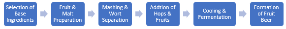 Other elements to consider while establishing a fruit beer plant include raw material sourcing, workforce planning, and packaging. The production of fruit beer relies on malt, hops, yeast, and water. Malt provides the sugars needed for fermentation, while hops contribute bitterness and aroma. Yeast is essential for converting sugars into alcohol, and water, which makes up about 95% of beer, significantly influences the flavour profile. In addition, various fruits such as apples, cherries, grapes, raspberries, mango, peaches, and blueberries are often added to enhance flavour. Breweries may use fresh, frozen, or pureed fruits, with some opting for fruit extracts for consistency. This practice not only creates unique flavour profiles but also supports local agriculture by sourcing fruits from nearby farms. For example, craft breweries frequently experiment with seasonal fruits to produce limited-edition brews.