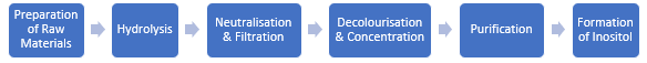 After extraction, the next step is hydrolysis to break down complex compounds into inositol. For example, phytic acid (inositol hexakisphosphate), a common form found in plants, is hydrolysed to produce free inositol.