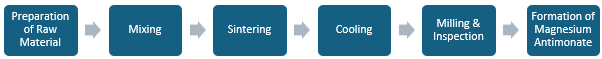 The process of producing magnesium antimonate involves the following steps: