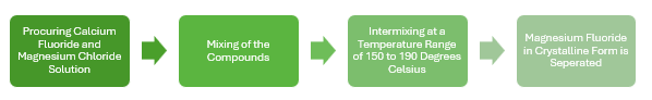 The process of making magnesium fluoride starts by using calcium fluoride, which is then intermixed finely with a 50 per cent magnesium chloride solution at a temperature between the range of 120 to 130 degree Celsius. Following this process, the magnesium fluoride is obtained in a gel form which makes it difficult to recover. However, at a temperature range of 150 to 190 degrees Celsius, the magnesium fluoride obtained is easily separated from the reaction mixture.
