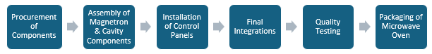 The manufacturing process of microwave ovens begins with the procurement of essential components, including magnetrons, transformers, capacitors, diodes, waveguides, turntables, and control panels from various suppliers. The first step in assembly is the construction of the magnetron, where the cathode, anode, and other parts are attached and tested for proper operation. Next, the cavity assembly is created by connecting the magnetron to the waveguide and cooking chamber, along with the installation of the turntable and stirrer fan. Concurrently, the control panel is assembled, incorporating the microcontroller, buttons, and display, which is then connected to the cavity assembly.
