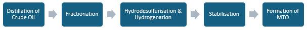 The hydrodesulfurised MTO is further refined through fractional distillation to ensure the desired purity and composition. Impurities are removed, and the final product is collected.