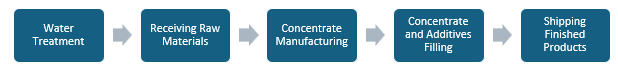 The production of soft drink concentrate begins with the treatment of the water used as the base. The water undergoes rigorous purification to remove any microorganisms. Next, the raw materials required for the concentrate like flavour concentrates, sweeteners, and packaging components are received, inspected, and analysed. Once approved, these materials are moved to the manufacturing area, where the treated water and liquid/solid ingredients are carefully measured and pumped into stainless steel mixing tanks. Then the manufactured concentrate is piped into a sanitised filling room, where concentrate is filled into the appropriate containers. Finally, the filled and labelled concentrate containers are moved to the warehouse for storage. They are then prepared for shipment to bottling companies, ensuring all labelling regulations are met.