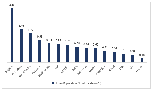 Table: Urbanisation Growth Rate in Selected Economies, 2022