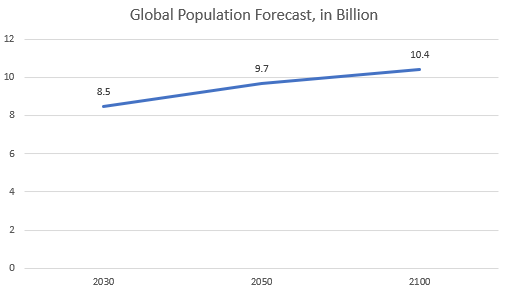 Fig: Global Population Forecast, in Billion