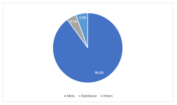 The competitive landscape of virtual reality headsets is restricted to a few players, making it a highly concentrated market. Meta holds 90% of the VR headset market, followed by ByteDance's Pico, with a 4.5% share. Taiwan's HTC, China's DPVR, and iQIYI are the other three companies in the VR headset market, with less than 4% share combined.