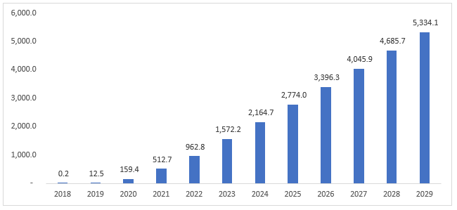 Fig: Global 5G Subscriptions (2018-2029), Million Units