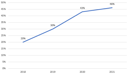 The India laptop market is expected to grow driven by the escalating consumer demand for consumer electronics and the flourishing IT service sector. Government initiatives aimed at digitising the economy contribute to this surge, increasing the need for laptops and associated accessories. Further, investments in the internet infrastructure help enhance connectivity and also lead to a reduction in internet costs, attracting a larger user base. According to the World Bank, about 46% of India’s population used the Internet in 2021, which was only 20% in 2018.
