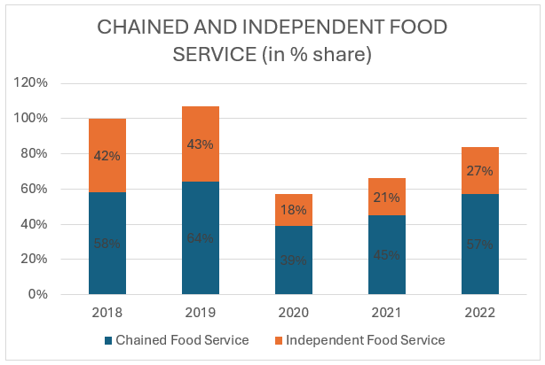 - With the growing health consciousness, consumers are opting for food service establishments that offer diverse and healthy menu items. Moreover, such establishments are increasingly providing transparency in nutritional information and ingredient sourcing to meet the evolving demands of health and environmentally-conscious consumers.