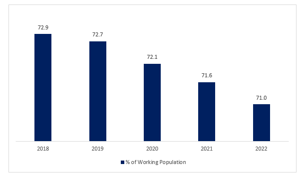 Figure: Working Age Population (% of Total Population) in South Korea, 2018-2022