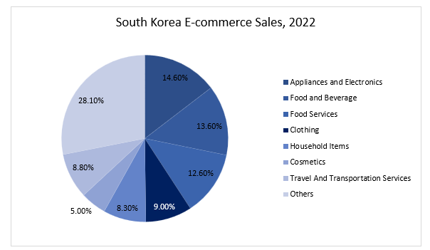 - The rising preference for online shopping plays a key role in the growth of the South Korean clothing market. According to the International Trade Administration, 9% of South Korean e-commerce sales were generated by clothing sales in 2022.