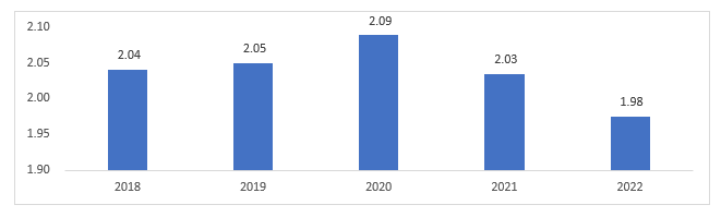 Fig: South Korea Cattle Milk production, MMT, 2018-2022