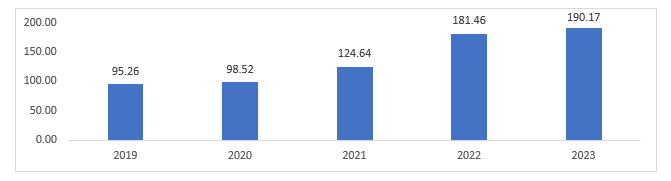 Fig: South Korea Import of Milk and Cream, USD Million, 2019-2023