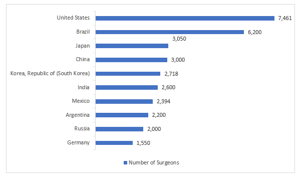 Fig: Countries with Estimated Number of Plastic Surgeons, 2022