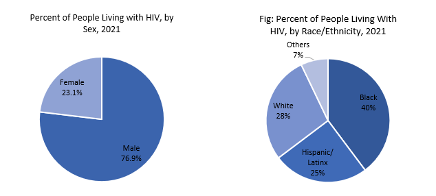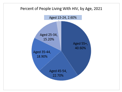 Male dominance among HIV-positive patients can be observed in the USA, where about 76.9% of the HIV patients were male in 2021. In addition, the age group of over 55 years remained the most affected in 2021.
