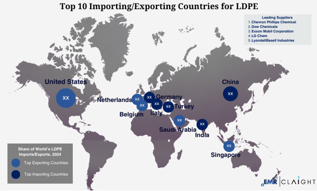 The Expert Market Research pricing report on Low Density Polyethylene (LDPE) provides insights into the top 10 leading trading countries and regions.