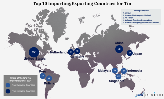 The Expert Marlet Research pricing report on Tin provides insights into the top 10 leading trading countries and regions.