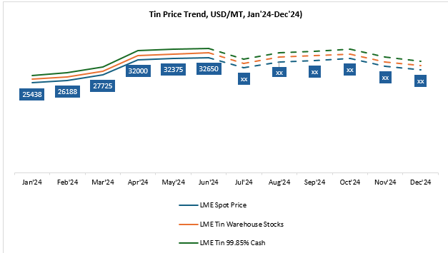 As of last year, different industries around the world such as electronics and renewable energy use tin hence the demand was high and because of its asset mark it is also popular amongst investors. Consequently, the three-month tin contract on the London Metal Exchange (LME) hit 32,745 USD per metric ton in April 2024, its highest level in more than a year. This rise depicts how tight supply and strong demand pushed prices higher.