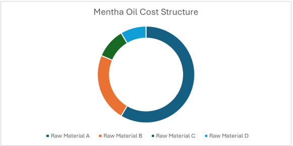 As per the mentha oil procurement report, key factors driving the cost modeling of production are raw material prices, processing, labor, transport, and energy consumption. These factors are expected to determine the overall pricing models. The main raw material for mentha oil is seasonal produce from mint leaves. Mint cultivation is subject to widely continuous fluctuations in the prices of agricultural inputs like fertilizers, pesticides, and water. Further, labor costs can vary depending on the region, whereby in lower-wage areas, these costs will be influenced by labor scarcity because of shortages in workforces to cover laborers in more labor-intensive areas.