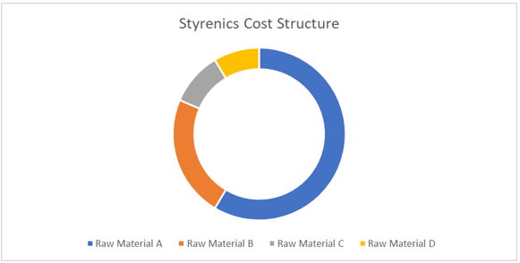 As per the styrenics procurement report, the production cost modeling is based on raw materials, energy, catalyst, operational costs, and regulatory compliance. Of these raw materials are the largest component. Ethylene and benzene are the dominant determinants of the overall pricing models as they are the basic feedstock in the styrenics production process. Their price movements are influenced by the fluctuations of natural gas and crude oil markets.