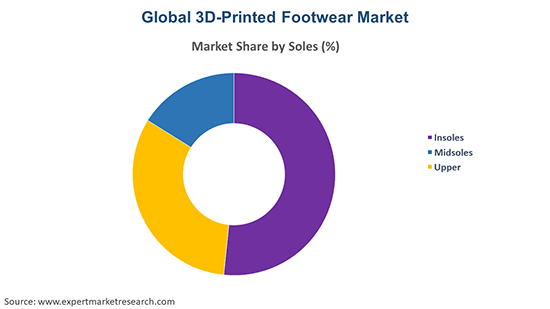 Insoles, midsoles, and upper are the leading soles segments of the product in the industry.