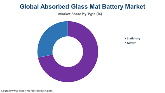 The major types of absorbent glass mat battery in the market include stationary and motive.