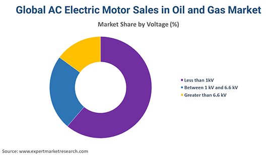The significant segments based on voltage of AC electric motor sales in the oil and gas sector are less than 1kV, between 1kV and 6.6 kV, and greater than 6.6kV.