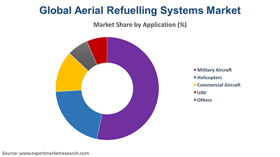 The various applications of aerial refuelling systems in the market include military aircraft, helicopters, commercial aircraft, and UAV, among others.