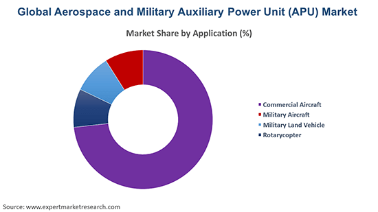 The significant applications of aerospace and military auxiliary power unit (APU) are commercial aircraft, military aircraft, military land vehicle, and rotary copter.