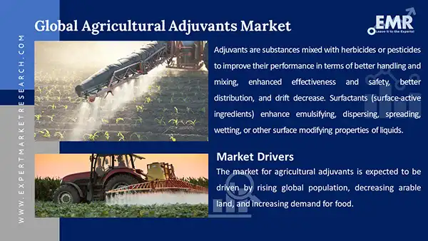 The market for agricultural adjuvants is expected to be driven by rising global population, decreasing arable land, and increasing demand for food. North America, Europe, Asia, and parts of Oceania are projected to be key markets.