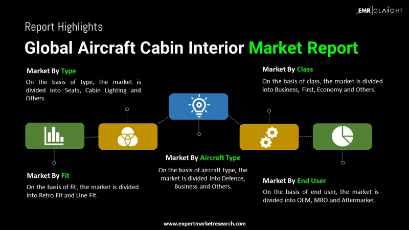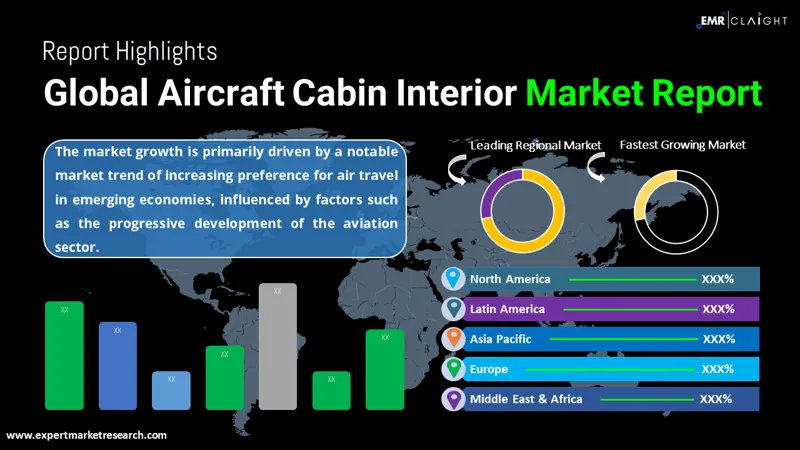The global market for aircraft cabin interior is being driven by the increasing technological advancements in the aviation industry. The growing focus of the aircraft component manufacturers to enhance passenger experience during long flights and efficiently use space is projected to aid the market growth. The rising demand for comfortable seats with increased legroom and in-flight entertainment system is not only contributing to the growth but also opening up new aircraft cabin interior market opportunities. Moreover, the growing preference for air travel in emerging economies due to factors such as the developing aviation sector, rising disposable income, and increasing penetration of key players is expected to boost the expansion of the global aircraft cabin interior industry. Additionally, the increasing availability of cheaper flight options and the investment in research and development (R&D) are expected to present the market with new growth opportunities.
