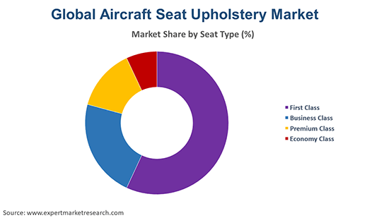 The major seat types of aircraft seat upholstery in the market include first class, business class, premium class, and economy class.