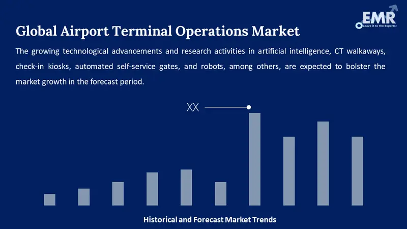 The construction of new airports and the renovation of the older ones are contributing to the growing need for airport terminal operations to provide a seamless passenger experience. The increasing passenger traffic owing to rising globalisation, tourism, and cultural exchanges are accelerating the market development of airport terminal operations. The expanding use of smart technologies such as digital cameras offers multiple advantages, such as they help monitor passenger queues at check-in, security checkpoints, and parking areas. The growing concerns over safety and security are leading to the setting up of advanced passenger screening systems and the utilisation of Track & Trace technologies to track the checked-in luggage throughout the journey. The initiatives taken by restaurateurs to set up their businesses in airports are bolstering the market for airport terminal operations.