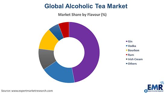 The leading flavours of alcoholic tea in the market are gin, vodka, bourbon, rum, and Irish cream, among others.