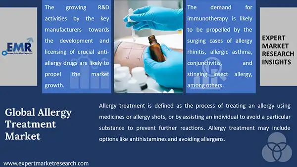Anti-allergy drugs and immunotherapy are the different kinds of treatments considered within the market report.