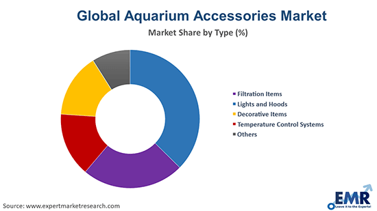 The leading types of aquarium accessories in the market are filtration items, lights and hoods, decorative items, and temperature control systems, among others.