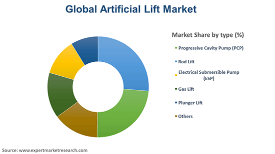 The significant types of artificial lifts are progressive cavity pump (PCP), rod lift, electrical submersible pump (ESP), gas lift, and plunger lift, among others.