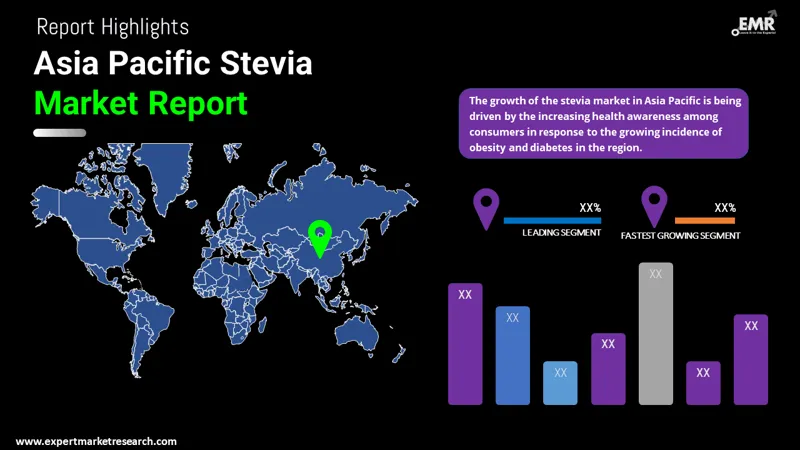 The Asia Pacific stevia market is growing robustly with increasing health awareness and demand for natural sweeteners. Consumers are turning to low-calorie, plant-derived sweeteners as they are concerned about obesity, diabetes, and artificial sweeteners. Asia-Pacific countries such as China, Japan, and India are at the forefront of stevia adoption with applications growing in beverages, dairy, bakery, and confectionery, thereby shaping trends in the Asia Pacific stevia market.