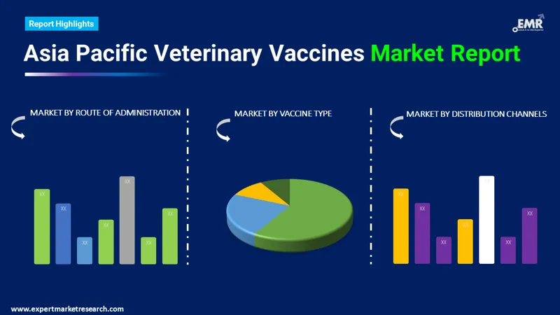 The Asia Pacific veterinary vaccines market is segmented based on vaccine type, route of administration, distribution channel, and country.