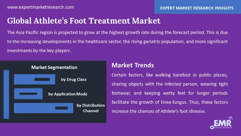 The easy availability of over-the-counter drugs is also anticipated to drive the market development. Novel product launches, approvals, and low-cost therapeutic strategies boost the Athlete’s foot treatment market growth.