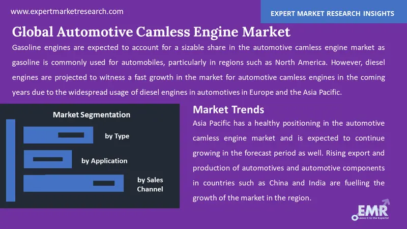 Asia Pacific has a healthy positioning in the automotive camless engine market and is expected to continue growing in the forecast period as well. Rising export and production of automotives and automotive components in countries such as China and India are fuelling the growth of the market in the region. This is coupled by various other factors such as increasing urbanisation, developing infrastructures, increasing disposable incomes, and expansion of industrial sectors. Further, countries such as India, Japan, and China are developing and manufacturing technologically advanced components in order to improve the performance of the vehicle and reduce fuel emission too. This is anticipated to support the growth of the market for automotive camless engines further in the forecast period.