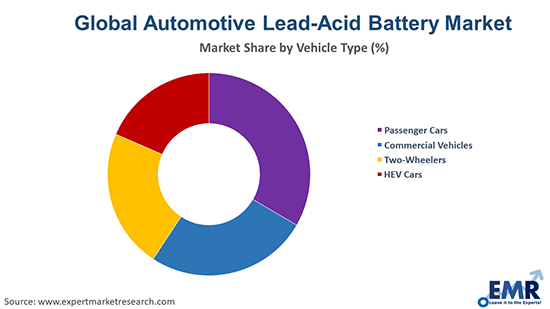 The passenger car, commercial vehicles, two-wheelers, and HEV cars are the leading vehicle types of automotive lead-acid battery in the market.